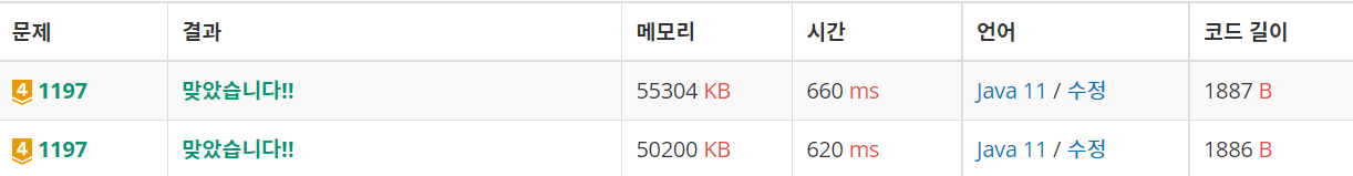 | [백준] 1504번 : 특정한 최단 경로 - 자바[Java] (0) | 2022.11.19 |