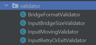 Bridge의 생성자를 호출하여 다리를 생성할 때 BridgeFormatValidator 를 호출하여 다리가 위, 아래 두칸만으로 이루어져 있는지 검사한다,