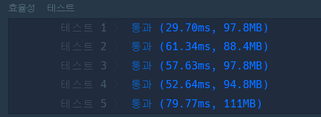 하지만 효율성 테스트에서 시간 초과가 떠서 실패했다.