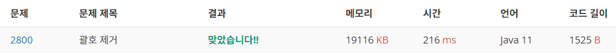 2800번: 괄호 제거