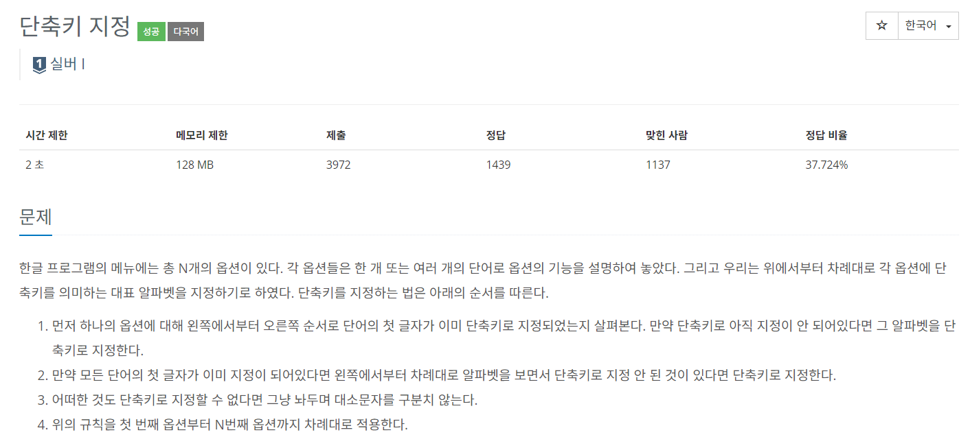 // 1. 단어의 첫 글자가 이미 단축키로 지정되었는지 살펴본다.