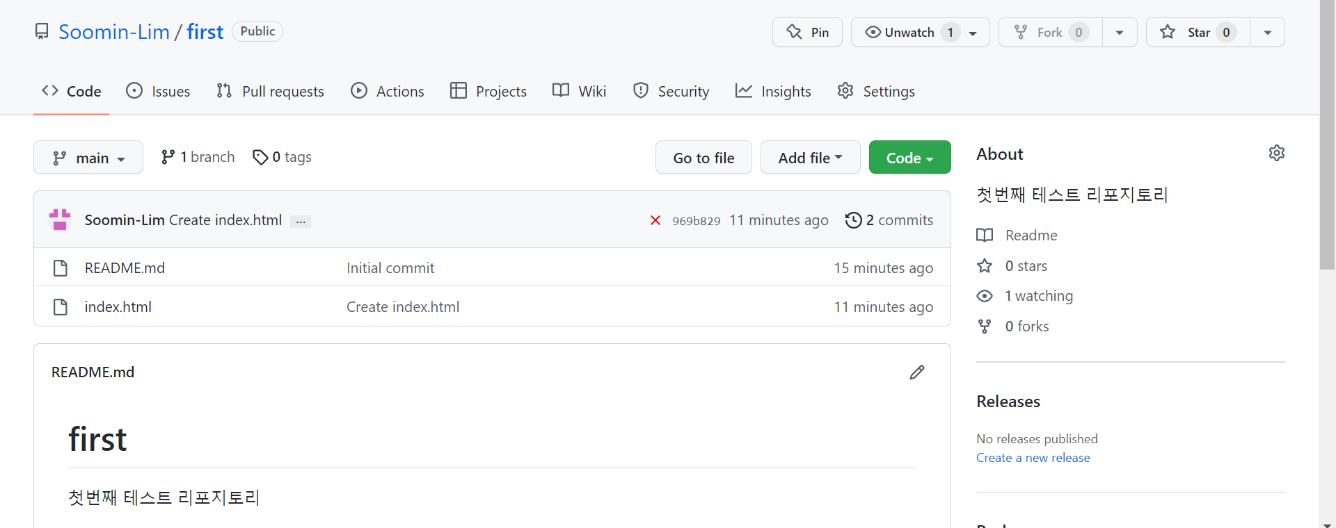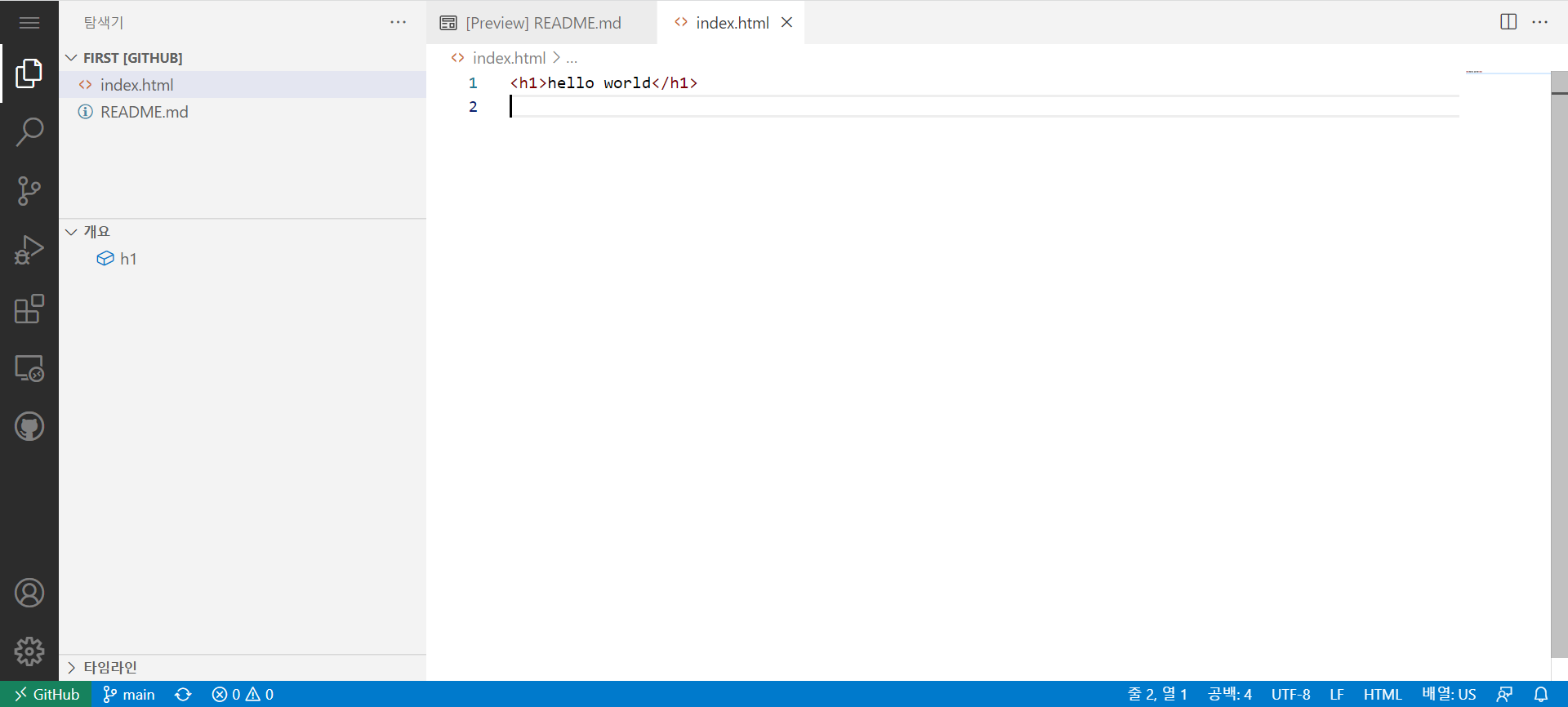 1) Github에서 public으로 리포지토리를 생성하고, index.html을 추가한다.