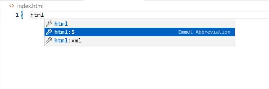 html:5를 엔터하면 다음과 같이 기본 틀이 만들어진다.