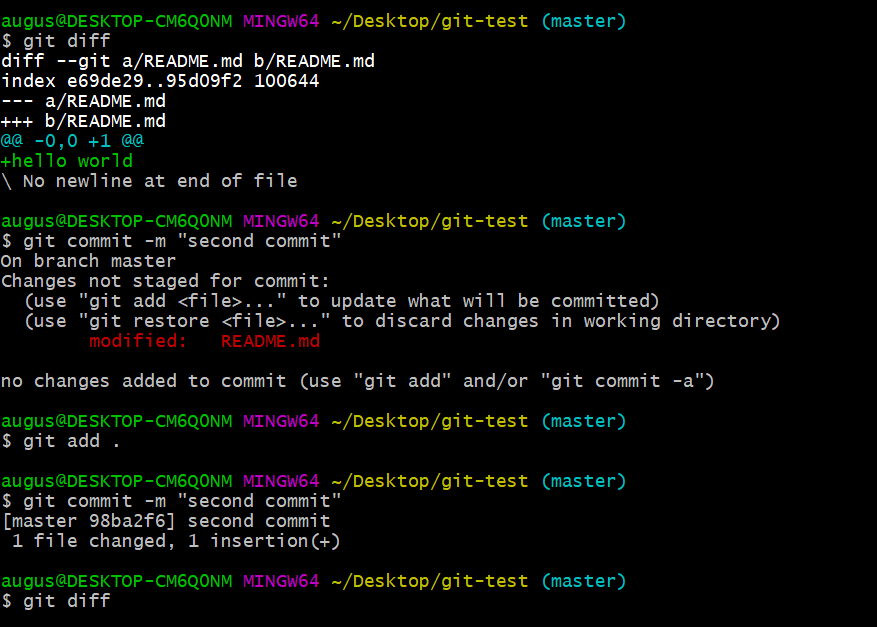 README.md를 수정한 후 git diff로 변경사항을 확인한 결과는 다음과 같다.