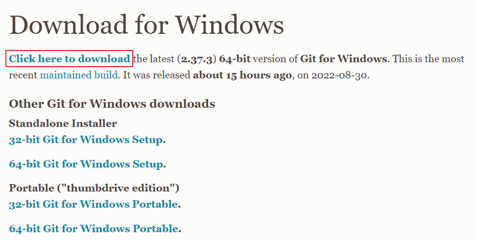 Windows를 클릭하면 아래와 같은 페이지가 열리는데 Click here to download를 클릭한다.