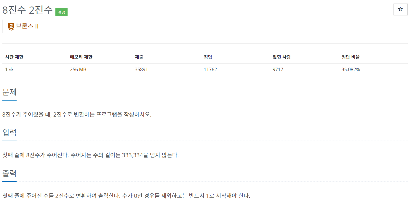 첫째 줄에 8진수가 주어진다. 주어지는 수의 길이는 333,334을 넘지 않는다.