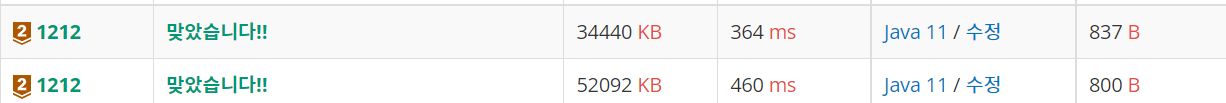 수정한 버전이 원래 버전보다 메모리와 실행 시간 측면에서 더 좋은 코드라는 것을 확인할 수 있다.