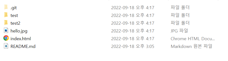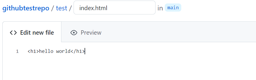 4) 리포지토리 안에 test 폴더가 생성되었고 폴더의 하위에 index.html 파일이 생성된 것을 확인할 수 있다.
