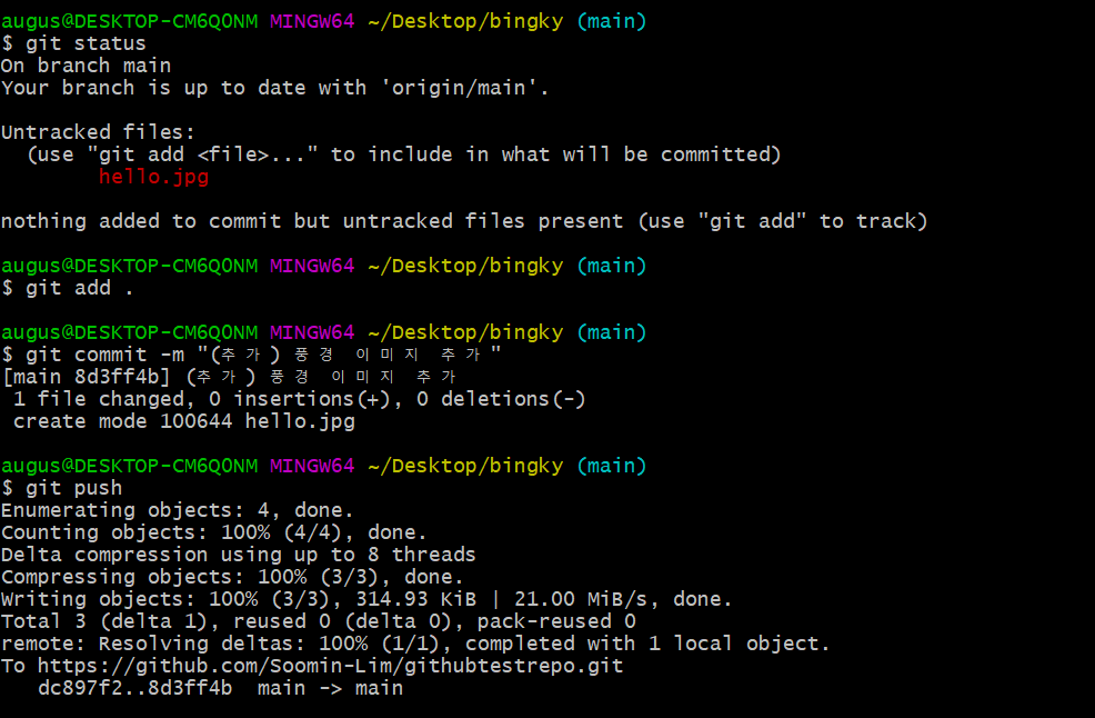만약 코드를 수정하거나 추가한다면 git add . -> git commit -m "메시지" -> git push 를 실행하면 된다.