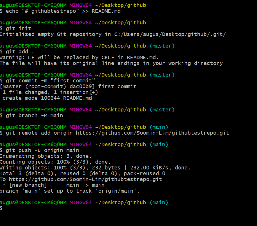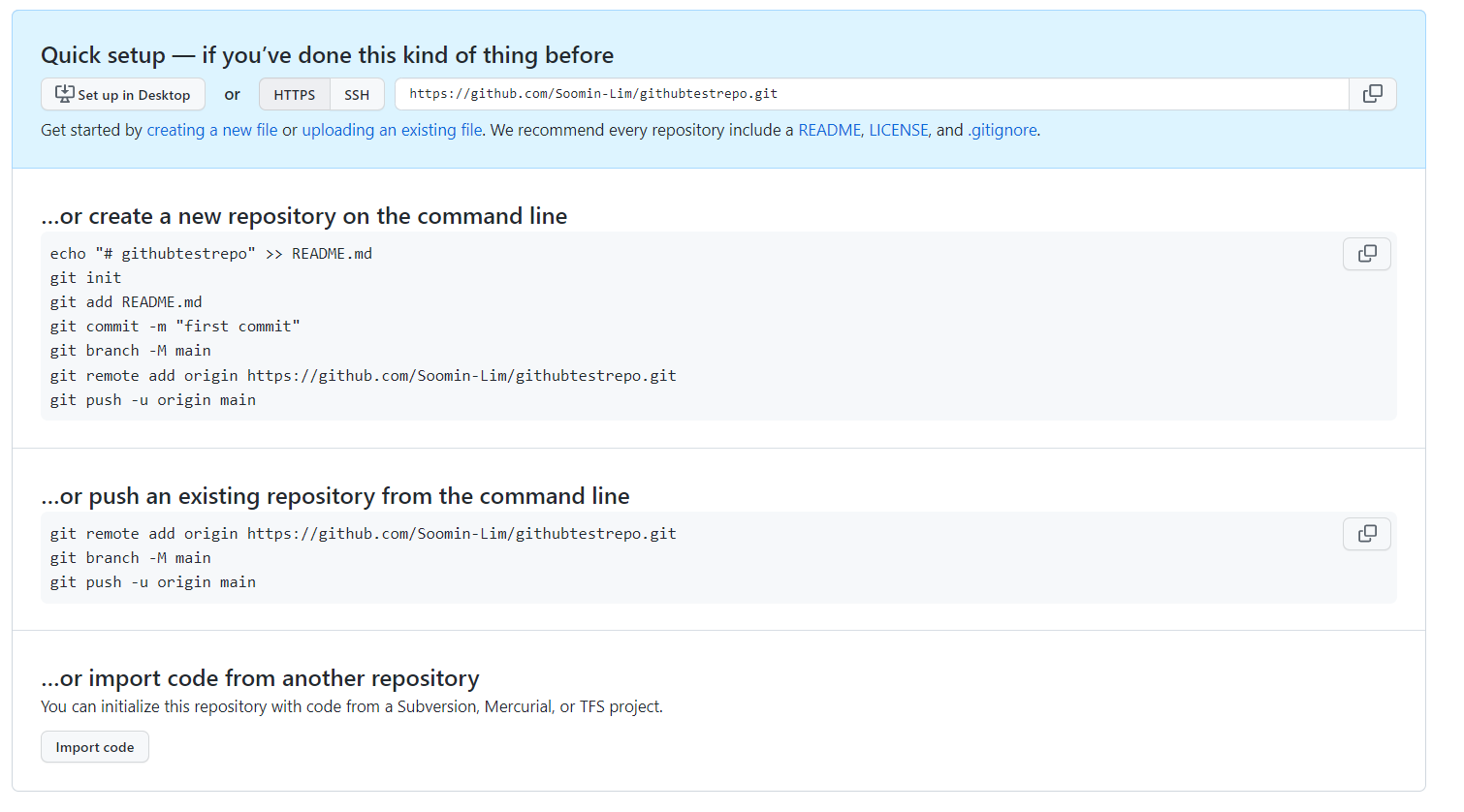 git remote add origin https://github.com/Soomin-Lim/githubtestrepo.git